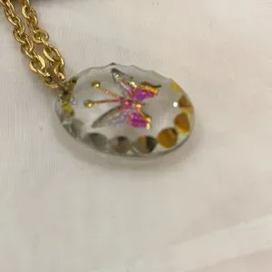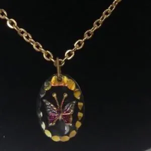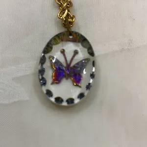 Vintage gold tone necklace and acrylic butterfly pendant. In excellent condition. Will add measurements.