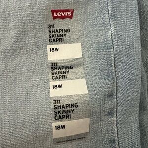 This listing is for a NWT's Levi's 311 Shaping Skinny Capri in size 18W. The capris are made with supportive, soft denim that sculpts and lifts to celebrate your features. Plus, they're made with an innovative tummy-slimming panel and a skinny cut that makes your legs look longer. It’s a win-win!
