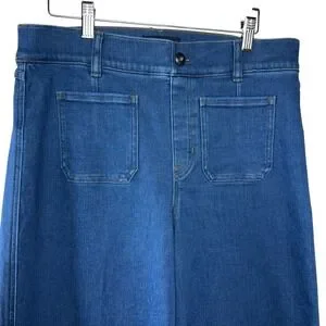 SPANX shape EveryWearCropped Wide Leg Jeans Size L Patch Pockets in Medium Washed Blue In excellent condition - worn once.