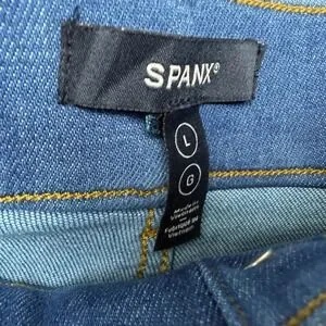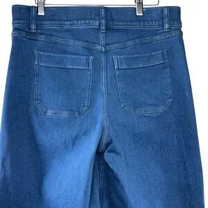 SPANX shape EveryWearCropped Wide Leg Jeans Size L Patch Pockets Washed Blue