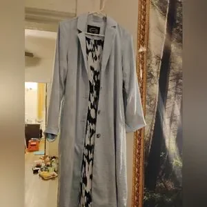 Light Blue silkyLong Coat with Blue White inner lining 17 inc p2p 45 inch long