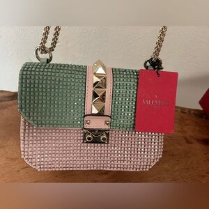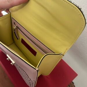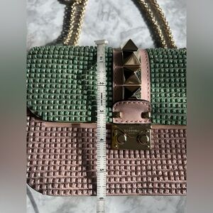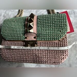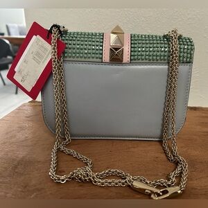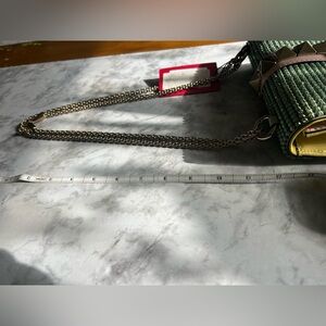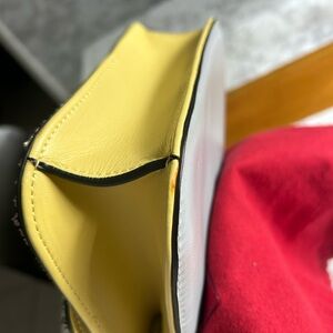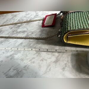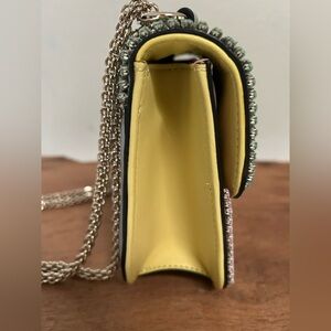 New with tags, comes with box and dust bag .It has 2 options: to use them with the long or double strip . The straps and front closure are gold-colored .It has some small stains on the yellow part of the bag, look closely at the photos It has approximately 3 or 4 slightly loose stones (There is an example in one of the photos)