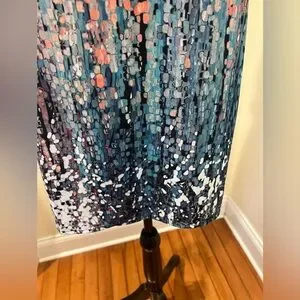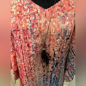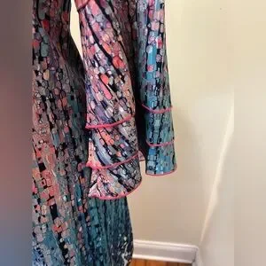 Ombre Bell Sleeve Dress V Neck Pink Teal Abstract Sz L NWT