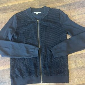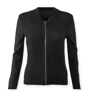 Cabi Black Bomber Zip-up Jacket | Sweater. Textured gorgeous fabric. Dress up or dress down. Elegant black sweater with textured front. Condition Like New