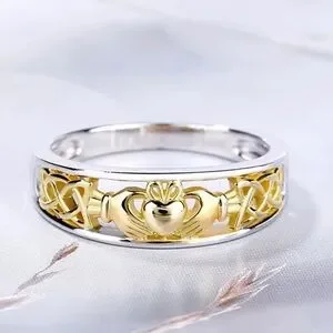 Sterling Silver & Gold Claddagh Celtic Ring