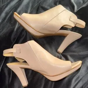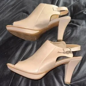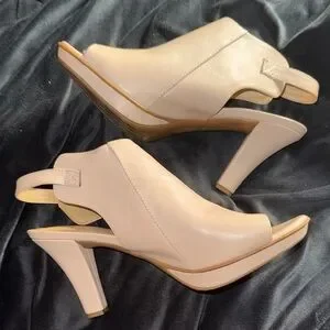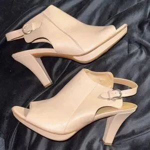 Naturalizer Size 9.5 Cream Women's Slingback Peep toe Booties Sandals 3” Heel