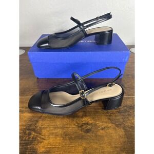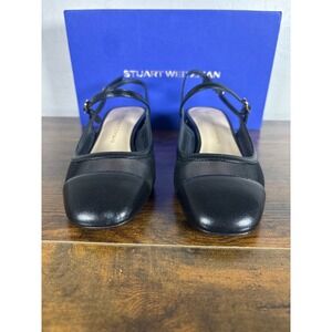 Stuart Weitzman Maeve Mary Jane Slingback Mesh Pumps Black SK655 Square Toe 8B