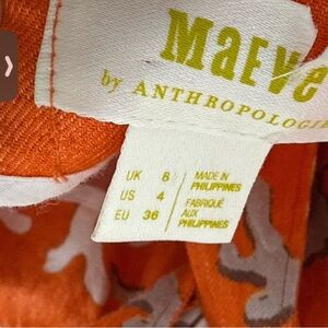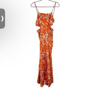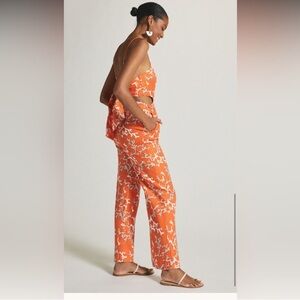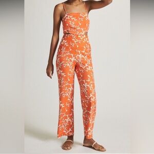 MAEVE anthro size 4 Rivera orange coral print cutout linen wide leg jumpsuit 4
