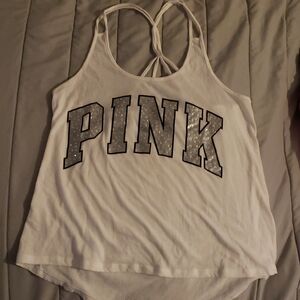 RARE! PINK Victoria's Secret White Tank with Glitter Logo