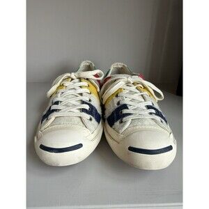 The Converse Jack Purcell Hudson's Bay Women Size 8 Colorful Stripe Shoes are a stylish and vibrant addition to any wardrobe. With a unique striped pattern in multicolor, these athletic sneakers feature a durable wool upper material and standard shoe width for comfort and fit. Perfect for those who appreciate punk, academia, colorful, skater, and casual styles, these Converse shoes are a standout choice for anyone looking to make a statement with their footwear. Some wear see photos for condition.