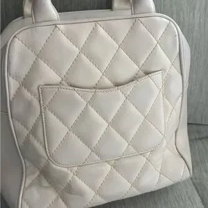 CHANEL Quilted Top-Handle Satchel in Cream White with Tassel