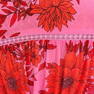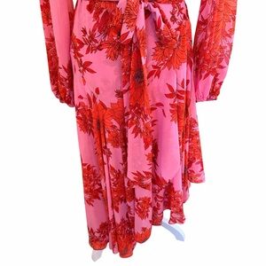 CAbi Pink/Red Chiffon Floral "Drama" Wrap Style Midi Dress #5614