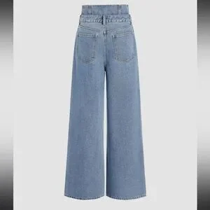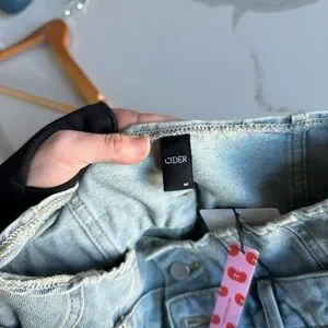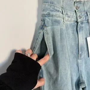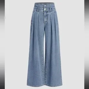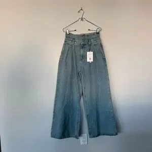 NWT Cider DOUBLE HIGH RISE SOLID BUTTON Wide Leg Jeans Light / Medium Wash