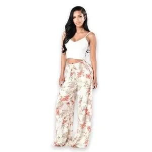 FASHION NOVA White Tropical Island Girl High Waisted Flare Pants - Kauai Natural