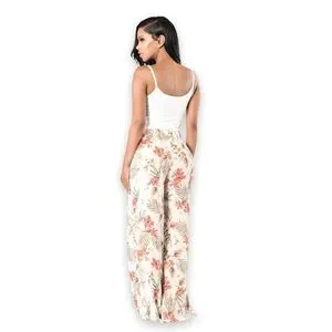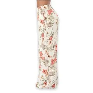 White Tropical Island Girl High Flare Pants - Kauai Natural