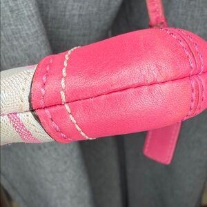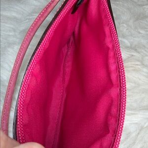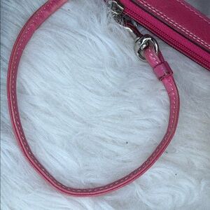 Coach NWOT clutch/wristlet, pink, leather, trim, and handle, pink hang tag