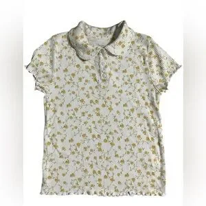 This charming kids' short sleeve shirt features a delightful floral pattern. Perfect for everyday wear, it combines comfort and style effortlessly. Soft and stretchy cotton blend.