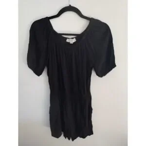 Loft Petites Black Short Sleeve Smocked Waist Romper Size SP Womens