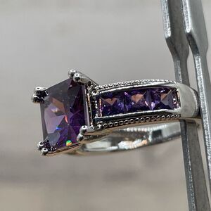Beautiful Statement Princess Cut Purple Amethyst CZ Silver Plated Ring Elegant