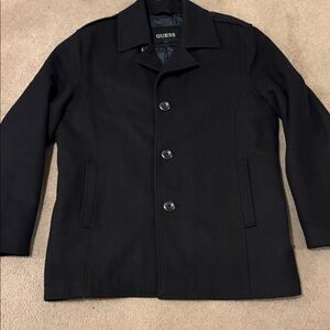GUESS men’s Classic Black Pea Coat