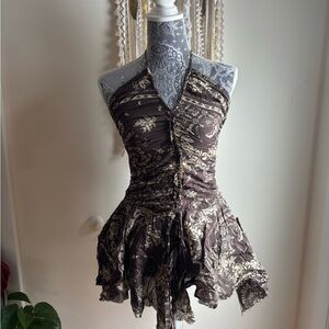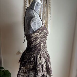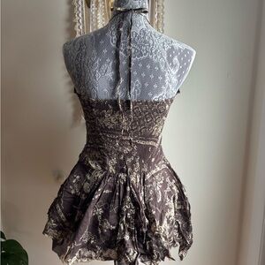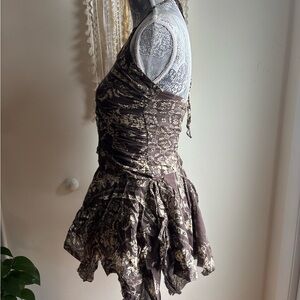 Chic top with textured brown and cream design. Ideal for casual wear.