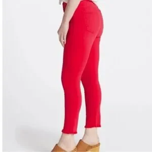 JEN7 For All Mankind Cropped Skinny Red Frayed Hem Jeans Size 8
