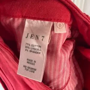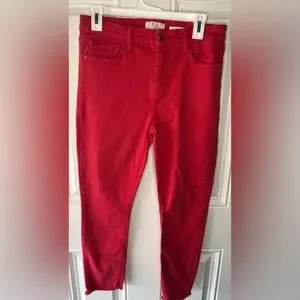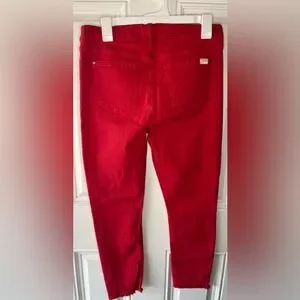 JEN7 For All Mankind Cropped Skinny Red Frayed Hem Jeans Size 8 Wonens