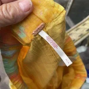 This is a fun little skirt in a school bus, yellow abstract pattern. Elastic waste in excellent condition fully lined.