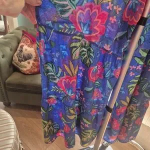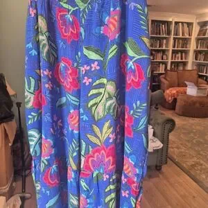 Johnny Was Blue Floral Wide_Legged Xl Striking Flowy Pants. Elastic Waist.