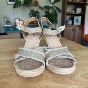 b.o.c. Beige Fabric Espadrille Wedge Comfort Bohemian Sandals