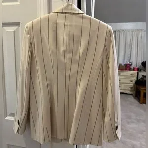Elegant cream blazer with pinstripes. Tailored design with button closure.