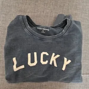 LUCKY brand Navy blue distressed comfy pullover LOGO crewneck sweatshirt XL