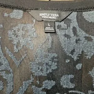 Simply Vera Vera Wang Sz L LS Blue/Black Velvet Burnout Top