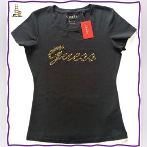 NWT-GUESS Women's Jet Black Logo Studded Tee