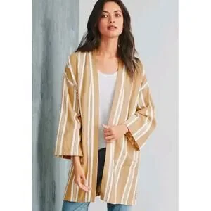 Eileen Fisher Striped Kimono Jacket Cardigan in White and Yellow Stripe in Women's Size Small/Medium.