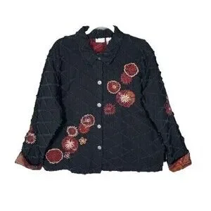 * Fashion Bug Y2K Floral Embroidered Beaded Jacket 18 20 Boxy 90s Blazer Grunge