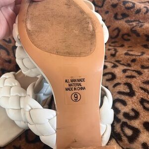 Ewhite braided double-strap sandals with a comfortable block heel.