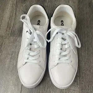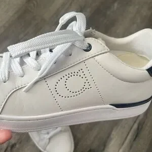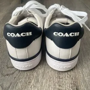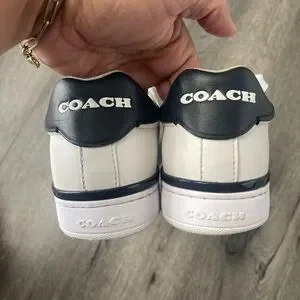 Stylish Coach sneakers for women. Elegant black and white color scheme. Perfect for everyday wear.
