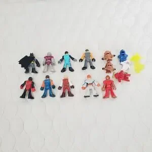 This lot of 16 Fisher-Price Imaginext figures, featuring characters from the Batman family, is a toy collectible perfect for boys aged 3 and up. Made in China, these playful pieces are ideal for imaginative play and storytelling, promoting creativity and problem-solving skills. Perfect for young superheroes in training, this set offers endless opportunities for fun and adventure.