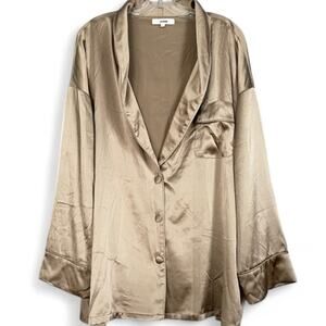 JOAH BROWN Oversized Silk Button Down Shirt in Fawn S/M