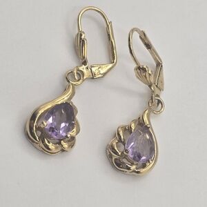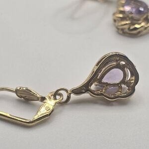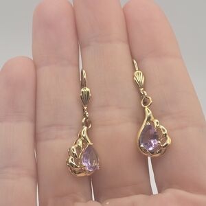 18K Yellow Gold Filled Amethyst Teardrop CZ Hoop Dangle Earrings