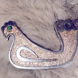 VTG Equador 925 Silver Bird Chicken Brooch w Stone eye 2”