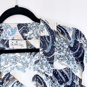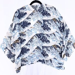 One Hundred Stars Great Wave Hokusai Kimono Jacket Navy Blue NWOT One Size