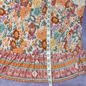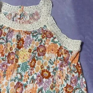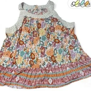 Charming floral top with intricate crochet neckline. Ideal for casual outings. perfect conditions#p586
