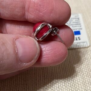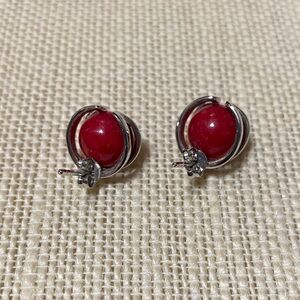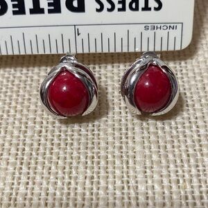 Elegant vintage sterling Silver and Red Stud Earrings