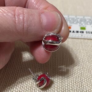 Add a touch of elegance with these stunning vintage sterling silver and red stud earrings. Perfect for any occasion. These are marked 925 for sterling silver and have the makers mark as well. They are from the 90’s and are in excellent condition.