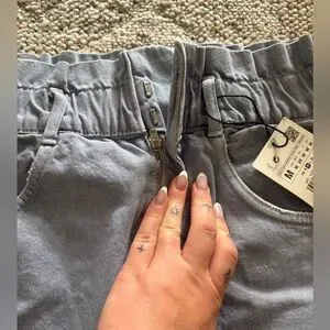 This chic blue mini skirt from Zara is perfect for both casual and work settings. Its sleek design and comfortable fit make it a versatile addition to any wardrobe.