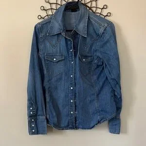 denim shirt from GAP. Button-front with classic collar. Ptp-18