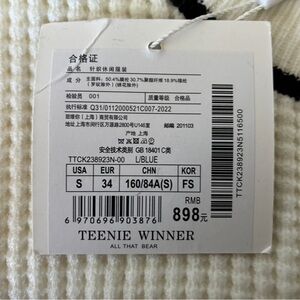 Teenie Winner White Knit Cardigan with Black Trim - Size S