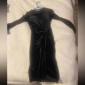 Chic black dress with long sleeves. Luxurious velvet fabric. Perfect for elegant occasions.